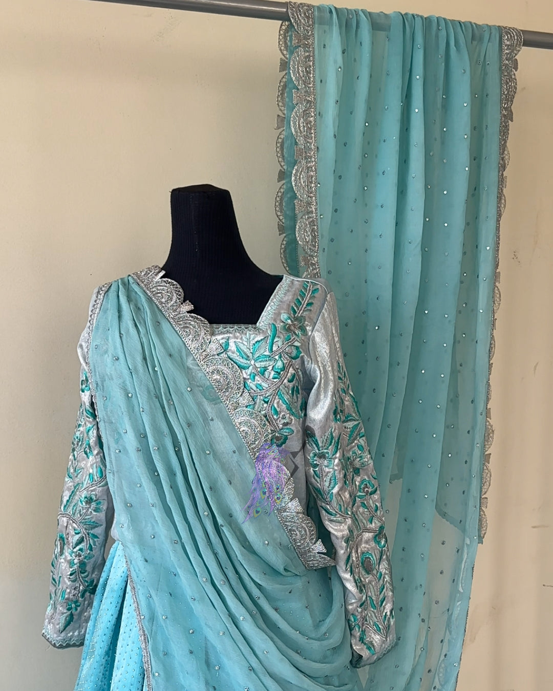 Fabric: Chiffon with Sitara Tila Work & Broad Laces on Border